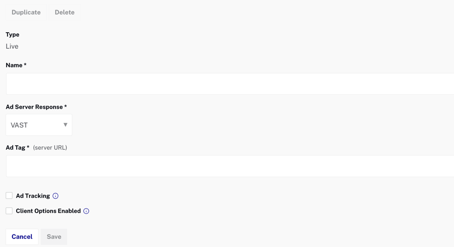- Saisissez les données comme décrit dans les étapes de configuration de l'ajout d'une publicité en direct ci-dessus.