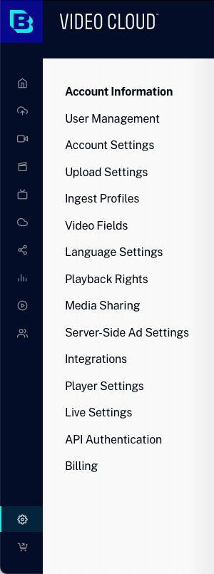 L'option Ingest Profiles vous permet de gérer les profils d'ingestion de votre compte Video Cloud. Pour plus d'informations sur la gestion des profils d'acquisition, consultez Gestion des profils d'ingestion.