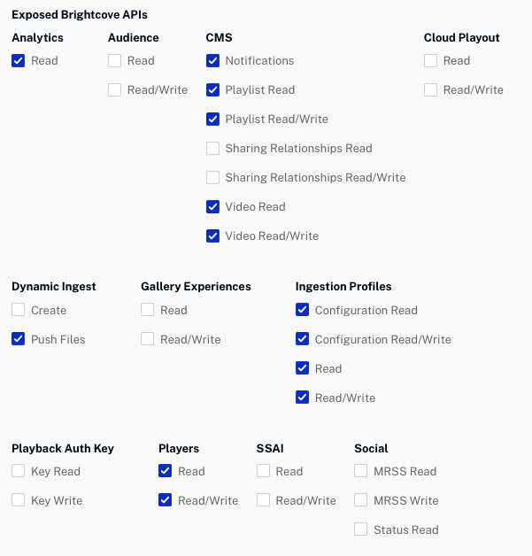 - Video Cloud : entrez l'ID client généré pour les informations d'identification d'authentification de l'API
