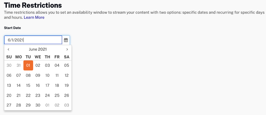 Les restrictions de temps vous permettent de limiter la lecture vidéo en fonction d'une date de début spécifiée. Pour attribuer des restrictions de temps à un droit de lecture, procédez comme suit :