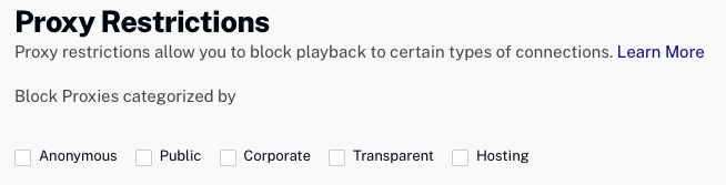 Les restrictions de proxy vous permettent de limiter la lecture vidéo en fonction de certains types de connexions. Pour attribuer des restrictions de proxy à un droit de lecture, procédez comme suit :