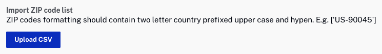 Il est également possible de télécharger un fichier .csv contenant des codes postaux. Cliquez sur Télécharger CSV pour parcourir et sélectionner un fichier à télécharger.