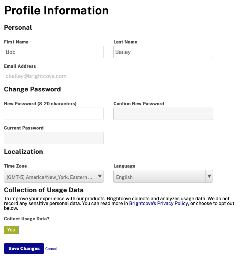 Tous les champs de la section Profile Information peuvent être modifiés. Cliquez sur Save Changes pour enregistrer les modifications apportées.