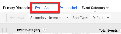 - Pour la dimension principale, cliquez sur Action d'événement.