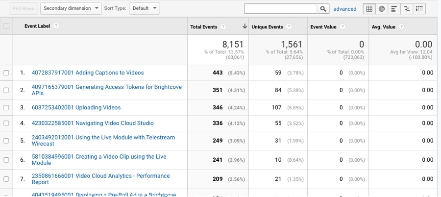 Les joueurs Brightcove configurés avec l'intégration Google Analytics enverront des événements et des données personnalisées à un compte Google Analytics spécifié. Cette rubrique décrit comment les données sont accessibles dans Google Analytics. Pour savoir comment activer l'intégration de Google Analytics pour un lecteur, consultez Configuration du suivi des événements Google Analytics.