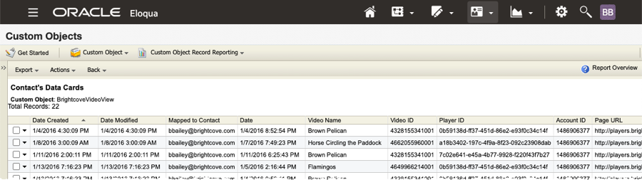 - A terminé avec succès le Intégration de Brightcove Campaign avec Eloqua