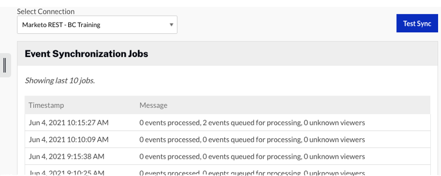 - L'état de votre événement view sera mis en file d'attente. Il peut prendre environ 15 minutes pour que les données se synchronisent avec Marketo. Une fois les données synchronisées, l'état passe à l'un des deux statuts suivants :