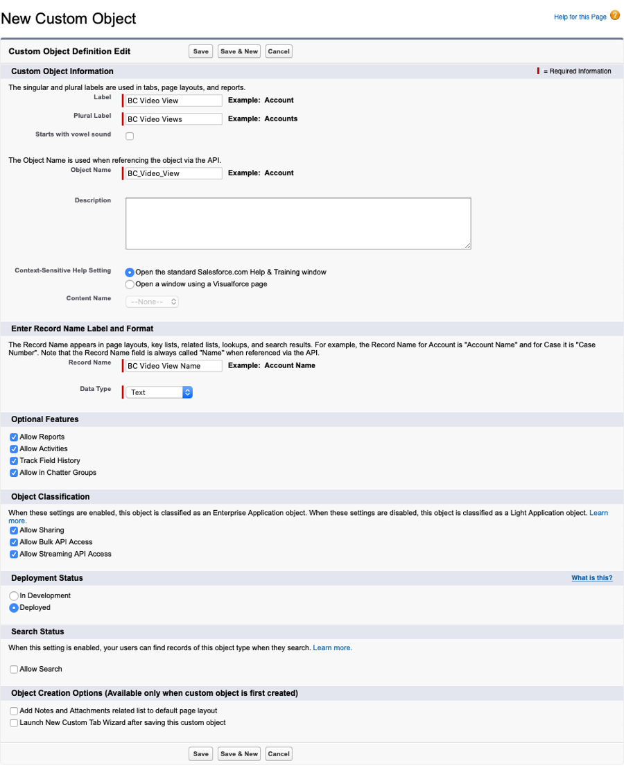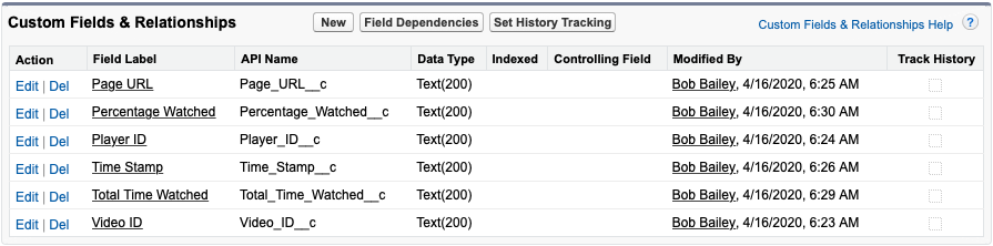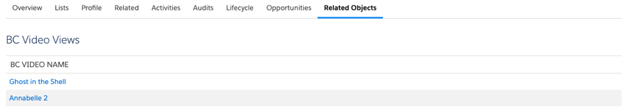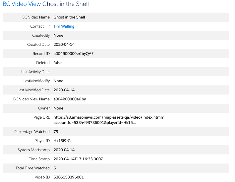 Cela associera l'objet personnalisé BC Video View à un contact dans Salesforce.