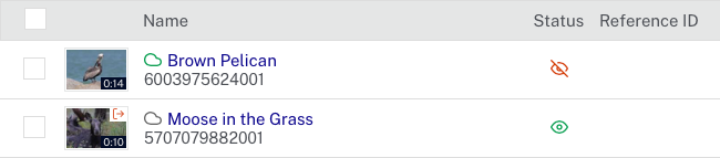 ) à côté des titres vidéo qui ont été ingérés à l'aide d'un profil d'ingestion dynamique ou contextuel. Les vidéos ingérées à l'aide d'un ancien profil d'acquisition afficheront une icône grise (