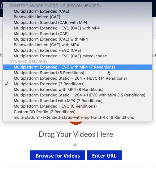 Du point de vue de la publication vidéo, quelques éléments apparaîtront différemment dans Video Cloud Studio. Tout d'abord, lors du téléchargement de vidéos à l'aide du module de téléchargement, vous verrez un CODAGE CONTEXTUEL lors de la sélection d'un profil d'ingestion.