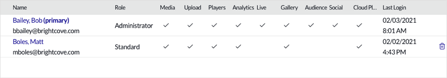 L'utilisateur recevra un message par courriel expliquant qu'il a été ajouté au compte. Le corps de la page répertorie tous les utilisateurs qui ont accès au compte.