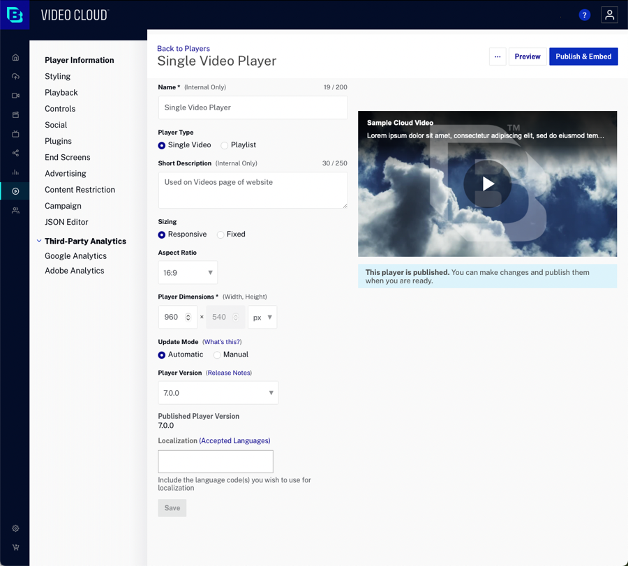 Notions de base sur le cloud vidéo : Création d'un lecteur