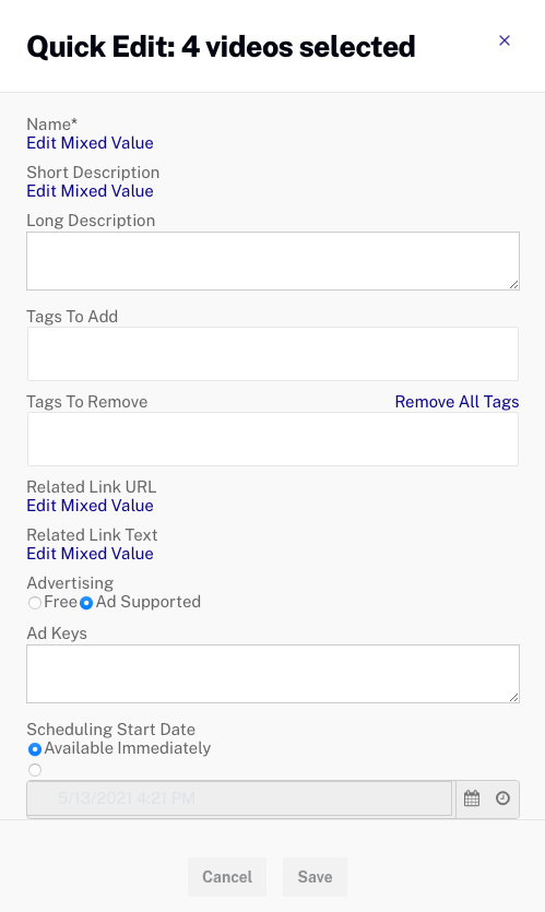 Notions de base sur le cloud vidéo : Modification des propriétés vidéo pour plusieurs vidéos