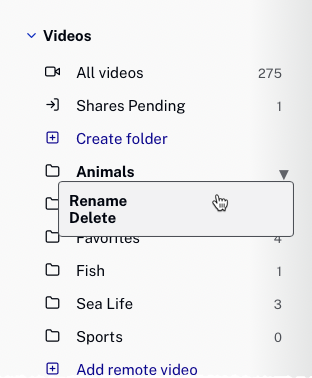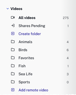 Tous les dossiers apparaîtront dans la navigation de gauche. Le nombre après le nom du dossier est le nombre de vidéos dans le dossier.