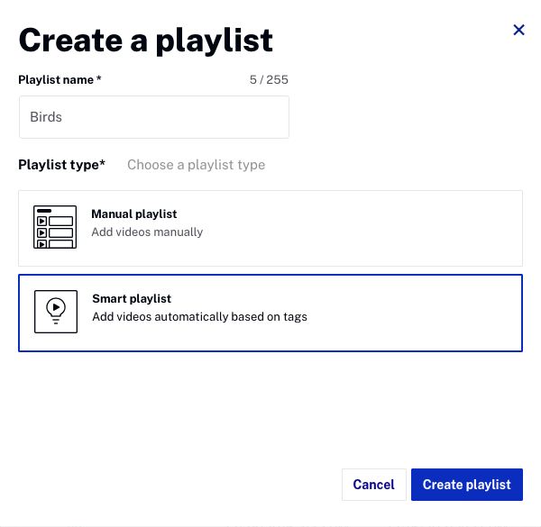 Birds. - Pour le type de liste de lecture, cliquez sur Liste de lecture intelligente.