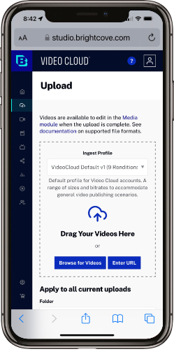 - À l'aide d'un appareil mobile, ouvrez Video Cloud Studio à l'adresse https://studio.brightcove.com.