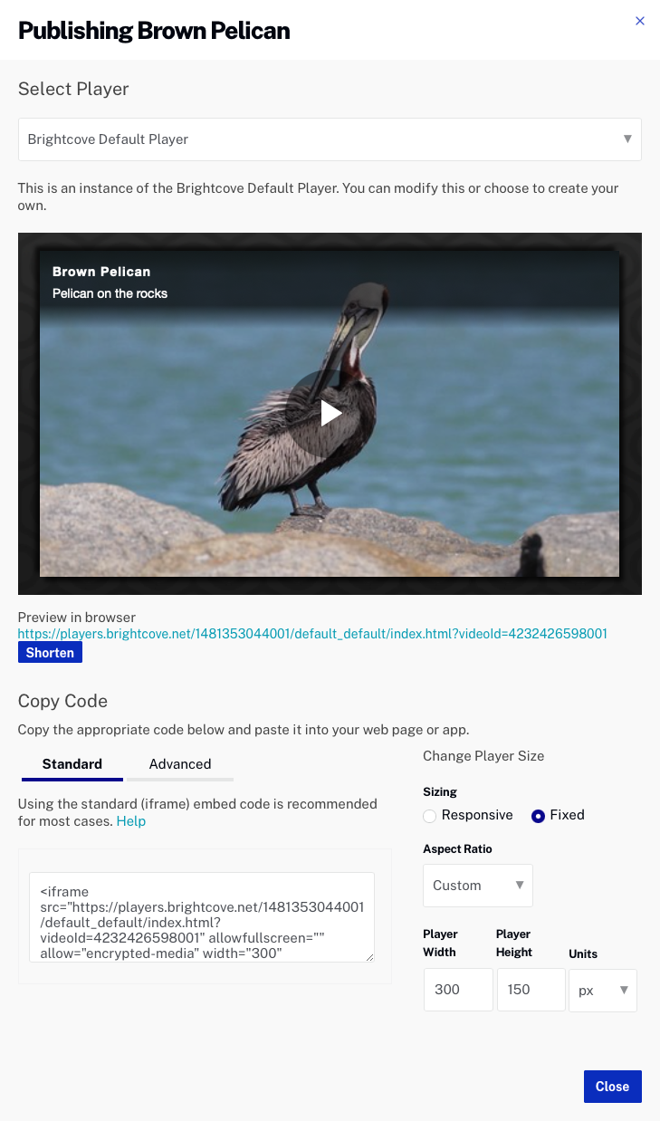 - Cliquez sur l' URL située sous le lecteur de prévisualisation pour l'ouvrir dans un nouvel onglet de navigateur. Confirmez que la vidéo s'affiche et qu'elle peut être lue.