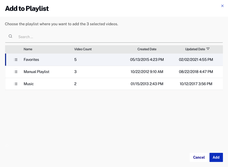 - Cochez les cases correspondantes aux vidéos à ajouter à la sélection.