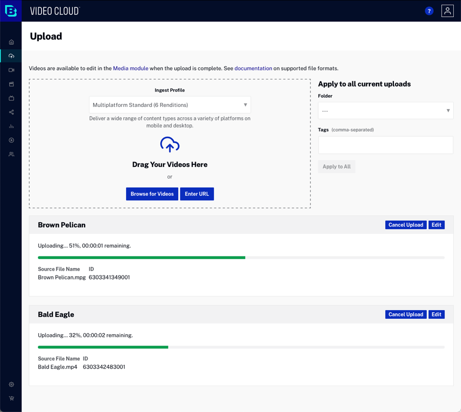 Téléchargement de vidéos vers Video Cloud