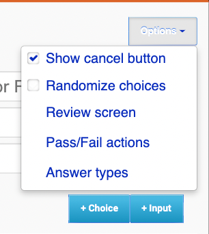 - Afficher un bouton d'annulation - Ajoute un bouton d' annulation au quiz permettant à l'utilisateur de sauter le quiz et de ne pas y répondre. Décochez cette case si vous souhaitez garantir une soumission.