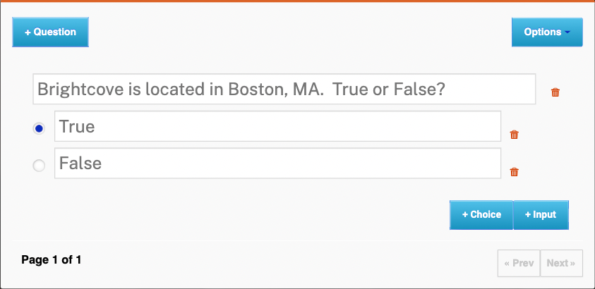 Un cas d'utilisation courant consiste à demander à un spectateur de "réussir" un quiz avant de pouvoir avancer dans la vidéo. C'est ce que l'on appelle le " gating conditionnel ", pris en charge par Brightcove Interactivity.
