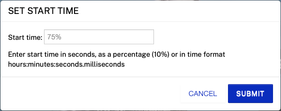 - Saisir une heure de début en secondes, en pourcentage ou en format horaire. Cet exemple définit l'heure de début au point 75 % de la vidéo. Cliquez sur SOUMETTRE.