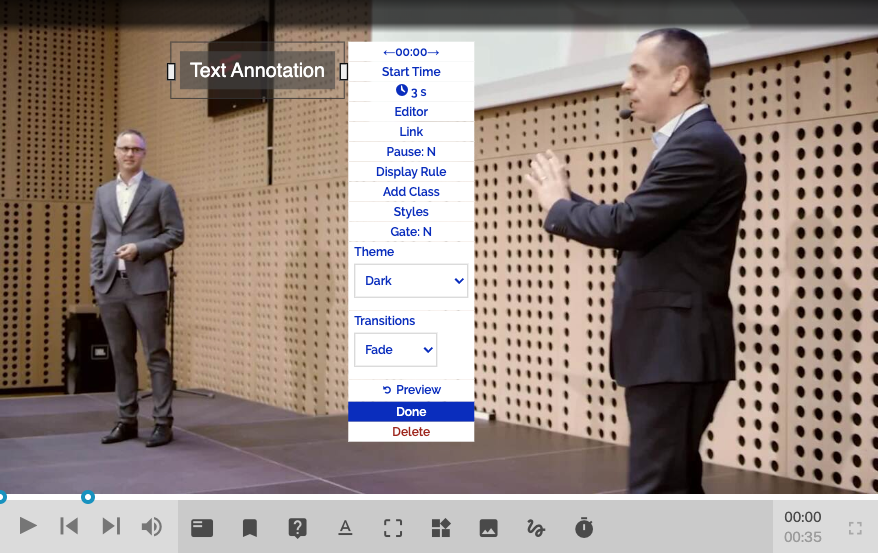 Réglez Pause sur Y pour mettre la vidéo en pause lorsqu'elle atteint cette annotation. Ensemble Pause pour N pour ne pas mettre la vidéo en pause.