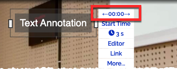 L'heure de début détermine le moment où l'annotation commence. Vous pouvez avancer l'heure de début d'une seconde en cliquant sur la flèche droite et la reculer en cliquant sur la flèche gauche.