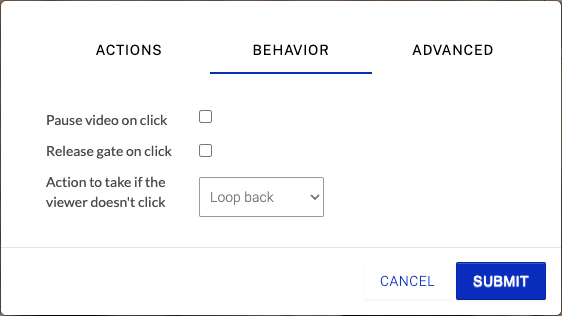 Le retour en arrière sur une section de la vidéo est un excellent moyen d'assurer l'interaction avec le client. Avec un retour en boucle, une partie de la vidéo est diffusée en boucle jusqu'à ce que le spectateur clique sur quelque chose. Cette technique est généralement utilisée dans le cadre d'une expérience de ramification. Par exemple, si vous avez 30 secondes de musique d'ambiance dans un menu déroulant (au lieu de mettre la vidéo en pause ou d'avoir un silence pendant que le spectateur prend une décision), vous pouvez faire revenir le menu en boucle si le spectateur n'a pas fait de choix à la fin des 30 secondes. Il s'agit d'une approche plus "conviviale" que celle qui consiste à passer automatiquement à la première branche si le spectateur ne fait pas de choix.