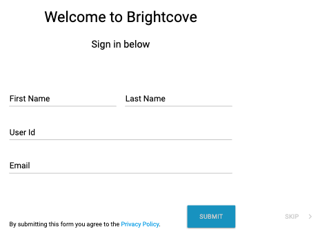 Le widget d'ouverture de session (communément appelé "mur d'entrée", "tourniquet" ou "portail") est un outil flexible et puissant qui vous permet de suivre les spectateurs connus. Il est utilisé pour générer des prospects, pour inciter les apprenants et les stagiaires à se connecter ou pour ajouter un portail à une vidéo. Les spectateurs n'auront à se connecter qu'une seule fois, et nous les mémoriserons automatiquement chaque fois qu'ils regarderont une vidéo Brightcove Interactivity sur le même appareil.