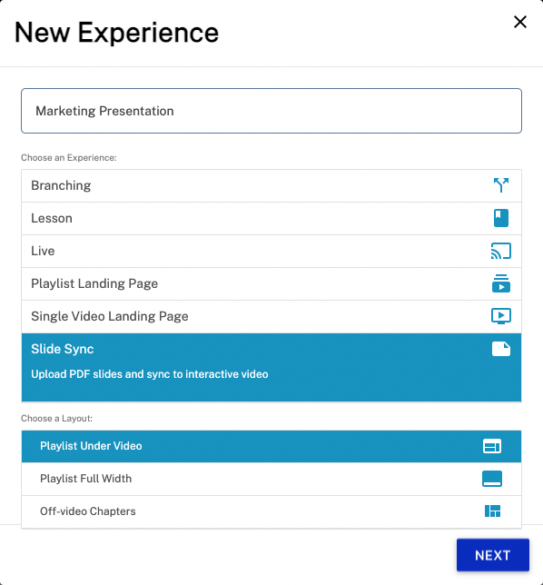 - Dans la liste des types d'expérience, cliquez sur Synchronisation des diapositives.