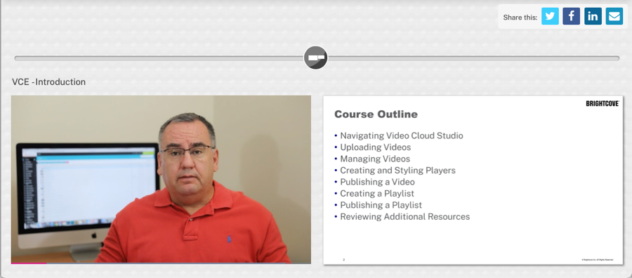 L'expérience Slide Sync permet d'afficher côte à côte une vidéo et le PDF correspondant. Au fur et à mesure de la lecture de la vidéo, les pages du PDF changent pour correspondre à ce qui est présenté dans la vidéo. Toute l'interactivité vidéo s'affichera également.