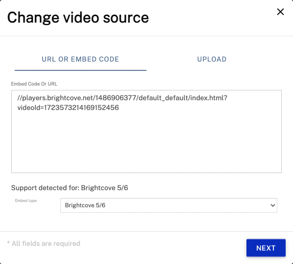 La source vidéo contrôle la vidéo qui se trouve derrière les annotations. Si le projet a été créé automatiquement à l'aide d'un lecteur Brightcove avec le plug-in HapYak, vous pouvez modifier la source vidéo dans le module Média à l'aide du remplacer la source fonctionnalité.