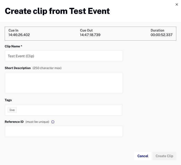 Le module Live offre la possibilité de créer des clips vidéo à partir d'événements terminés. Des clips peuvent également être créés pendant qu'un événement en direct est en cours. Il y a plusieurs raisons pour lesquelles vous pouvez créer un clip :