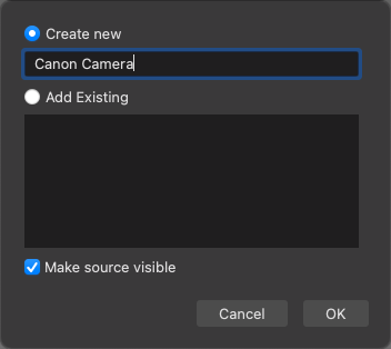 - Dans le Sources rubrique, cliquez sur + pour ajouter une nouvelle source. Sélectionnez une source dans la liste. Ce démarrage rapide utilise un appareil photo pour la capture vidéo, c'est pourquoi l'option Périphérique de capture vidéo est sélectionnée.