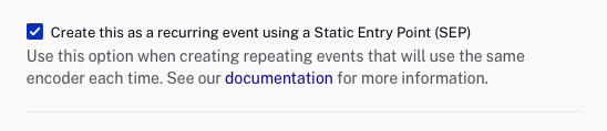- Créer un DVR dans le cloud : active la fonctionnalité DVR. Si l'événement est publié à l'aide d'une version Brightcove Player antérieure à la version 6.33.0, le plug-in Live DVRUX est requis. Le contenu est disponible pendant 7 jours après la fin de l'événement.