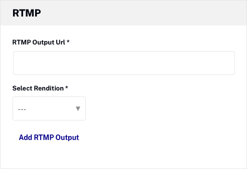 Entrez l' URL de sortie RTMP et le format associé à envoyer. Notez que le format de l'URL de sortie peut changer en fonction de l'endroit où le flux RTMP est utilisé. Pour plus d'informations, consultez Utilisation des sorties RTMP en direct pour diffuser sur Facebook et YouTube.