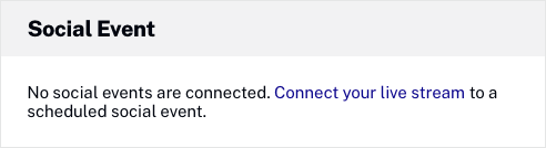 La section Événement social affiche des informations sur l' événement social programmé auquel le flux en direct est affecté, le cas échéant.