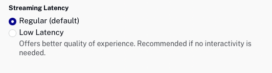 - Faible latence - Délai en direct réduit à environ 5-10 secondes (voir le Utilisation du streaming à faible latence partie ci-dessous)
