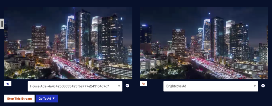- Pour voir le flux non modifié (non-SSAI) avec le flux avec publicités (SSAI)