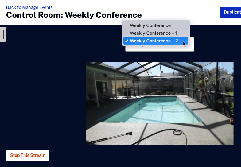 Pour arrêter tous les flux, sélectionnez le nom de l'événement dans la liste déroulante, puis cliquez sur Arrêter tous les flux.