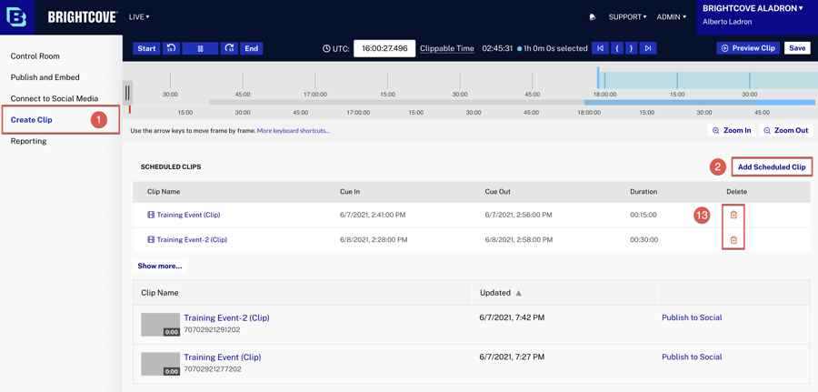 Programmation de clips dans Brightcove Live