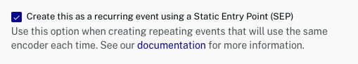- Une fois l'événement activé, l'heure de reconnexion par défaut est toujours valide (voir Live API : Points d'entrée statiques (pour plus d'informations)