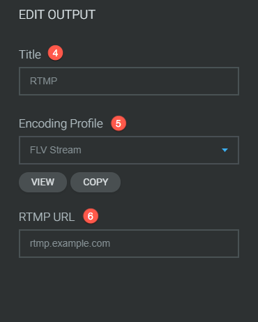 - Dans le URL RTMP champ, insérez l'URL du point de terminaison de streaming Brightcove.