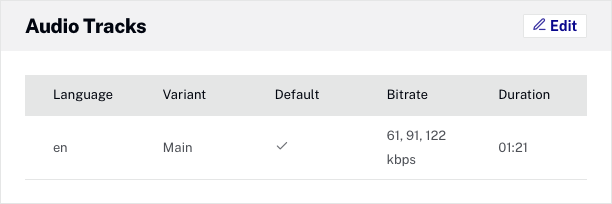 - Nous ne prenons pas en charge les étiquettes personnalisées pour les pistes audio. Si vous en avez besoin, vous devrez effectuer la modification côté client via l'API Player.