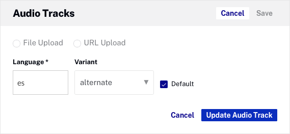 - Téléchargement de l'URL : entrez l'URL publique où se trouve le fichier de la piste audio, puis cliquez sur . Le fichier sera téléchargé dans Video Cloud.