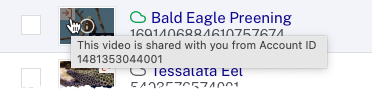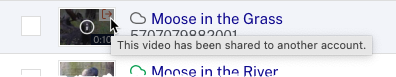 Les vidéos partagées afficheront une icône de partage dans le coin supérieur de la vignette vidéo pour indiquer que la vidéo a été partagée dans ou hors d'un compte.