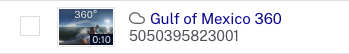 Les vignettes vidéo indiquent également les vidéos marquées comme des vidéos à 360 degrés en ajoutant un badge 360. Pour plus d'informations sur l'utilisation de vidéos à 360 degrés, consultez Utilisation de vidéos à 360°.