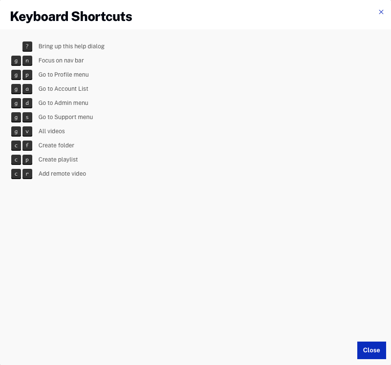 Appuyez sur le bouton dans le module Média ouvrira une liste des touches de raccourci disponibles.