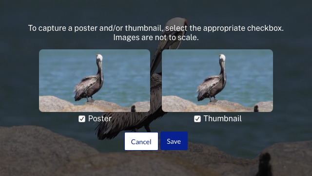 La capture d'image côté client prend une image du format associé le plus grand que le navigateur peut lire et l'envoie au processus d'ingestion de Video Cloud avec les dimensions de l'affiche et de la vignette spécifiées dans le profil d'ingestion par défaut. Si ces dimensions de profil sont plus grandes que le cadre que nous avons pu capturer, l'image n'est pas redimensionnée ou mise à l'échelle. Si elles sont plus petites, l'image est réduite. Pour plus d'informations sur l'amélioration de la qualité des affiches et des images miniatures, voir Amélioration de la qualité des affiches et des images miniatures.
